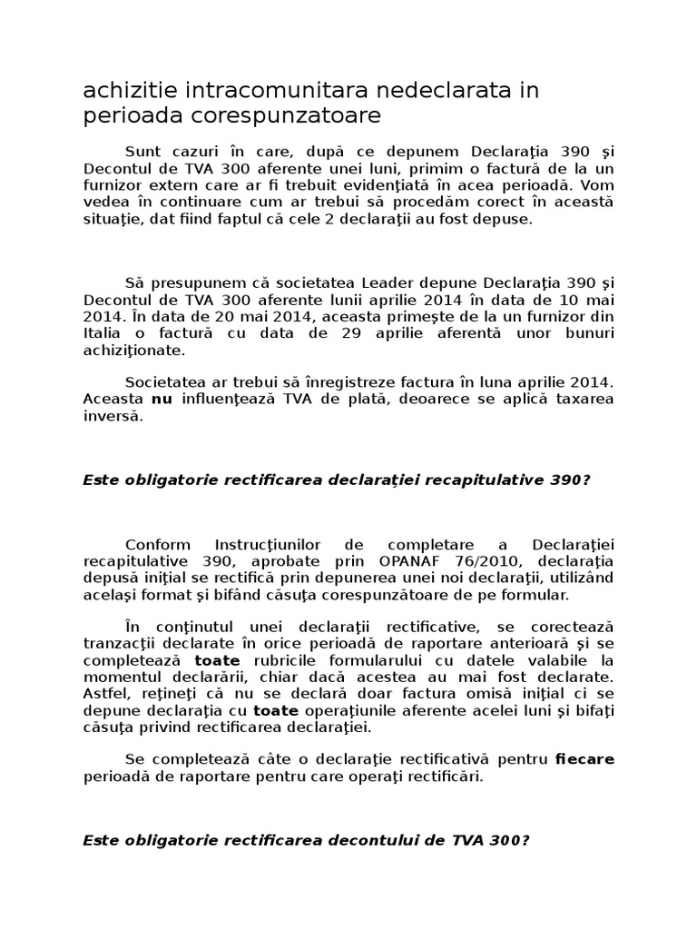 Achizitie Intracomunitara Nedeclarata In Perioada Corespunzatoare
