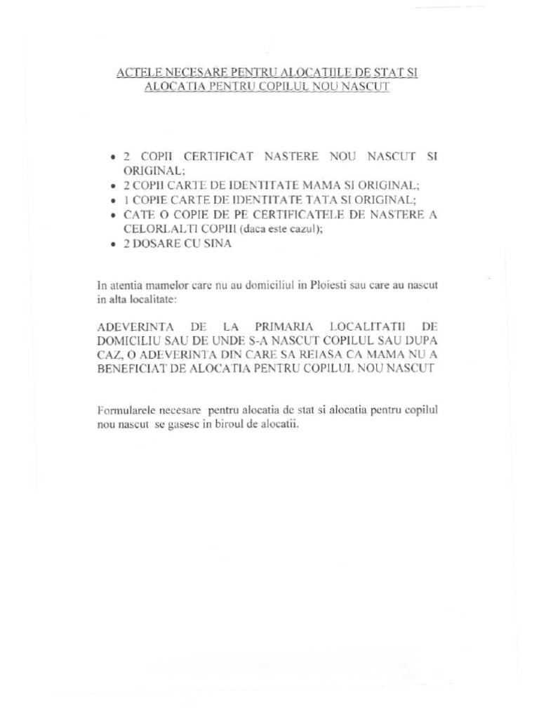 1 Acte Necesare Pentru Alocatiile De Stat Si Alocatia Pentru Copilul Nou Nascut Pdf