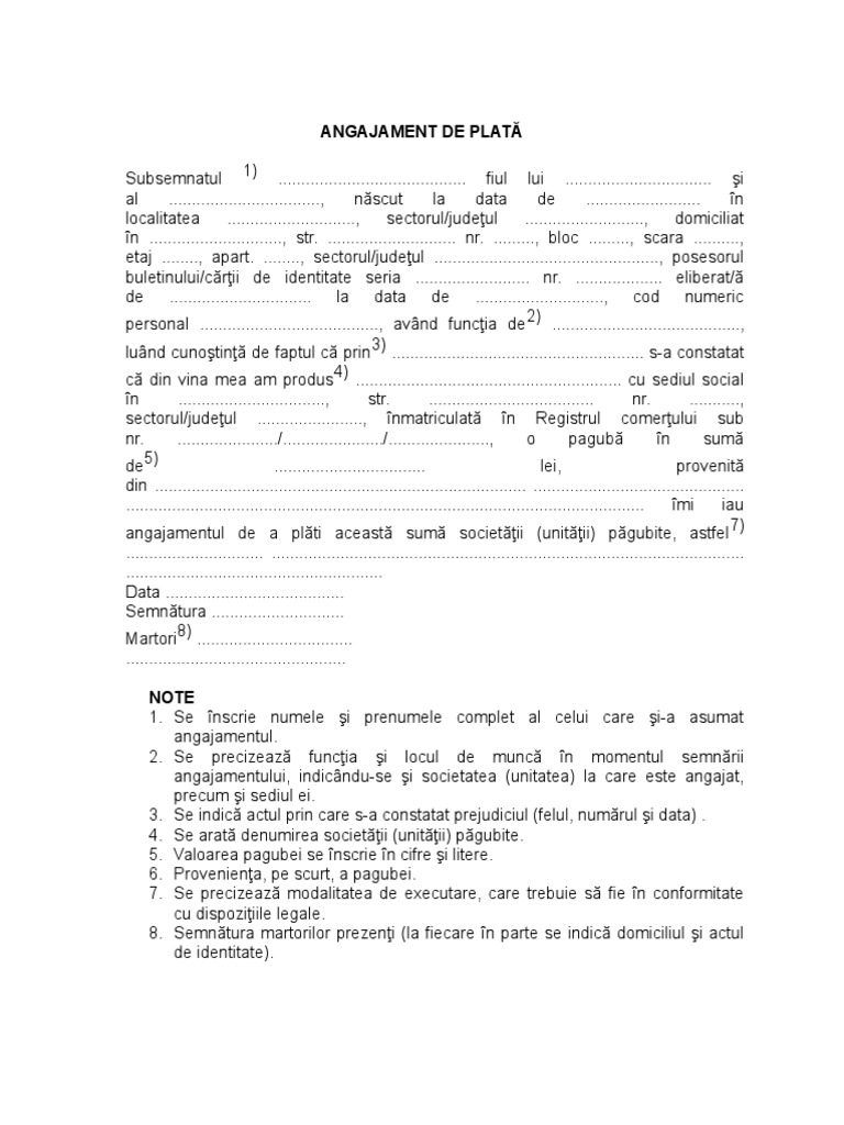 Angajament De Plata Formular Word Formulare Tipizate Gratuite