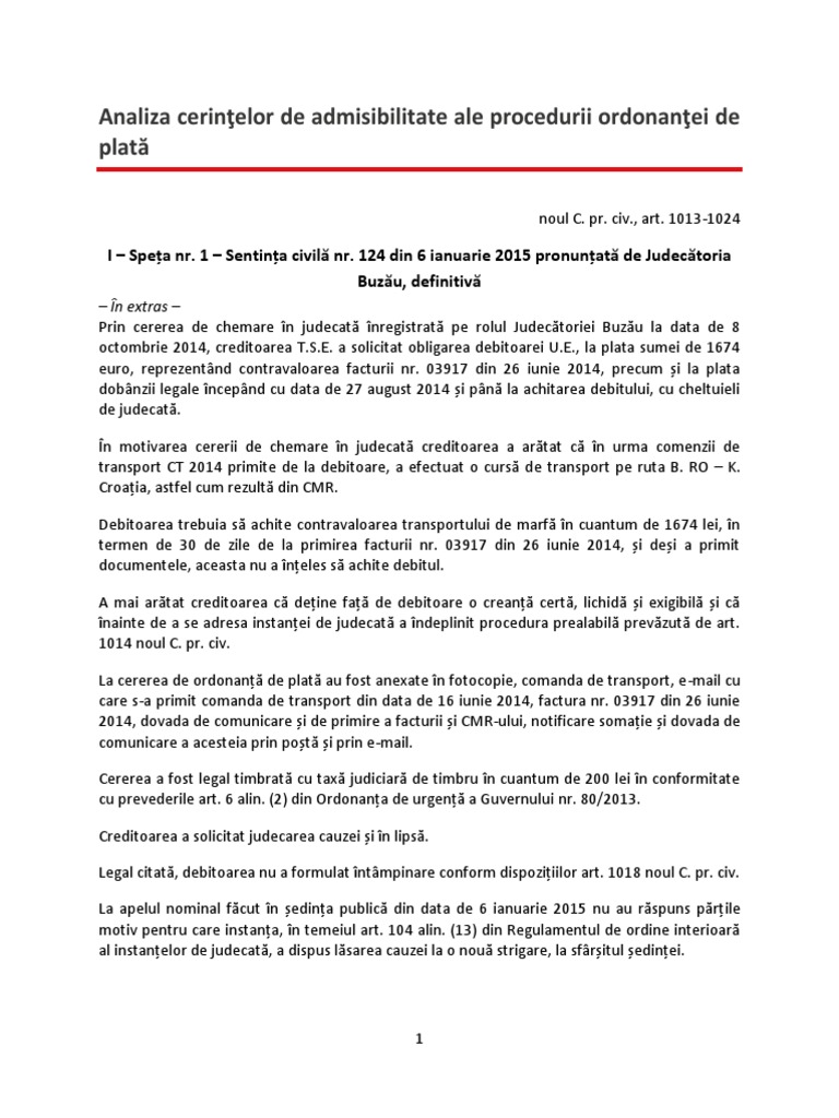 Analiza Cerinţelor De Admisibilitate Ale Procedurii Ordonanţei De Plată Docx