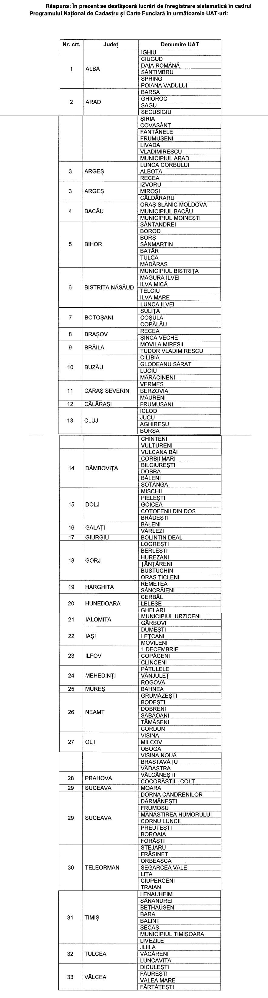 Cadastrarea Gratuită La Nivel Naţional In Ce Localităţi Se Lucrează In 2016