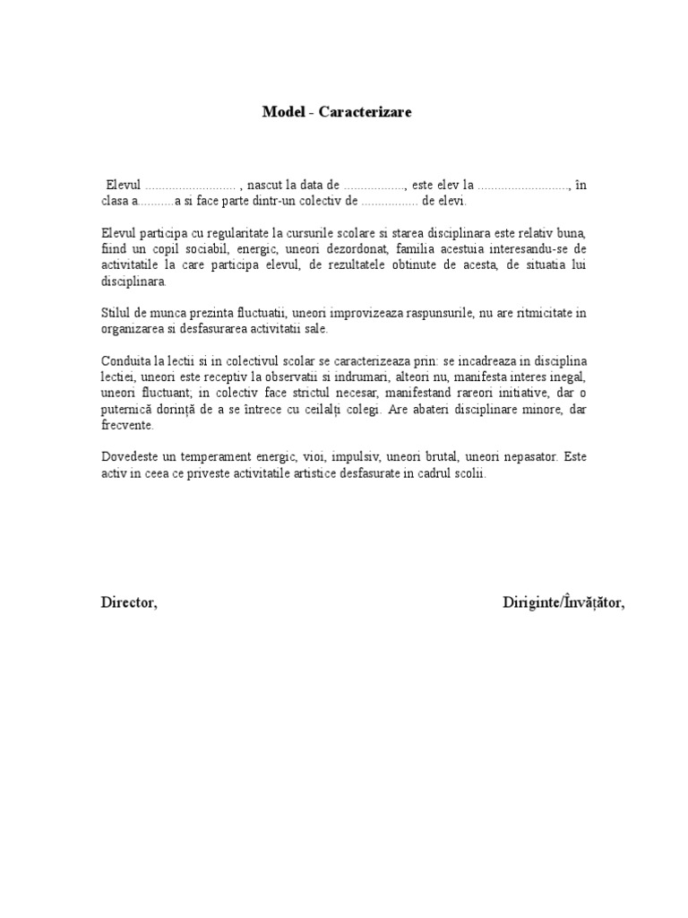 Caracterizare De La Locul De Munca