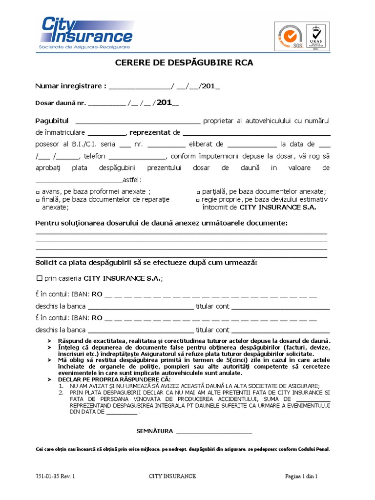 Http Am Dauna Ro Wp Content Uploads 2015 10 Cerere Despagubire Rca City Insurance Pdf