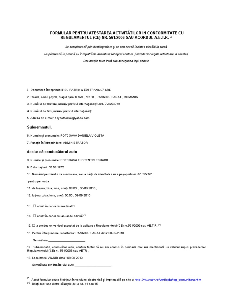 Adeverinta Concediu Pt Soferi Tir Tip Arr Romana