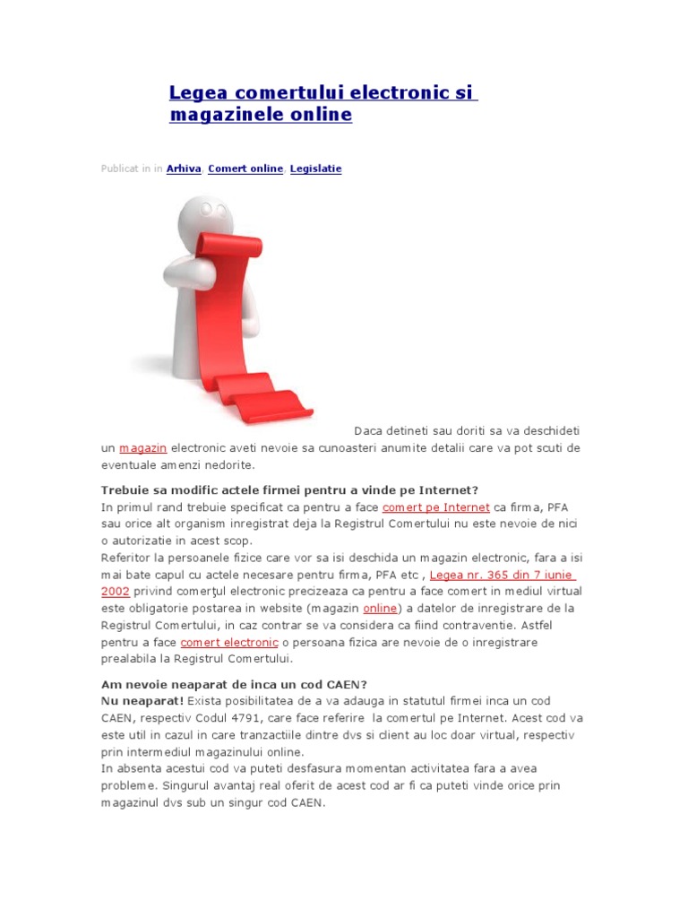 Legea Comertului Electronic Si Magazinele Online Publicat In In