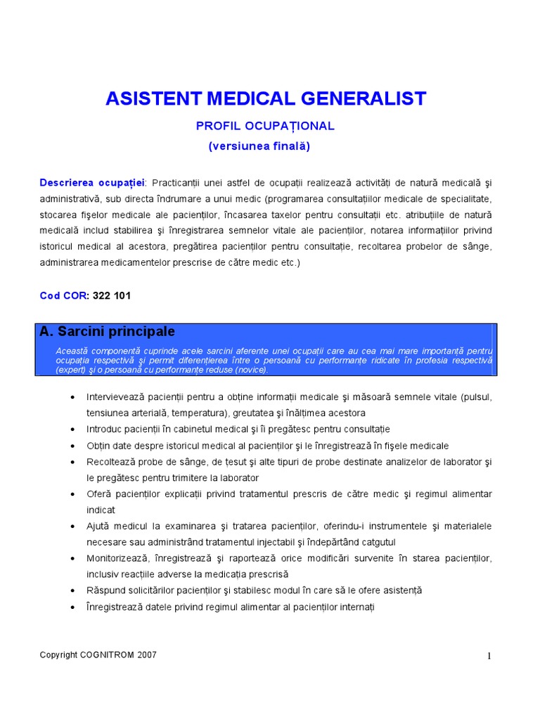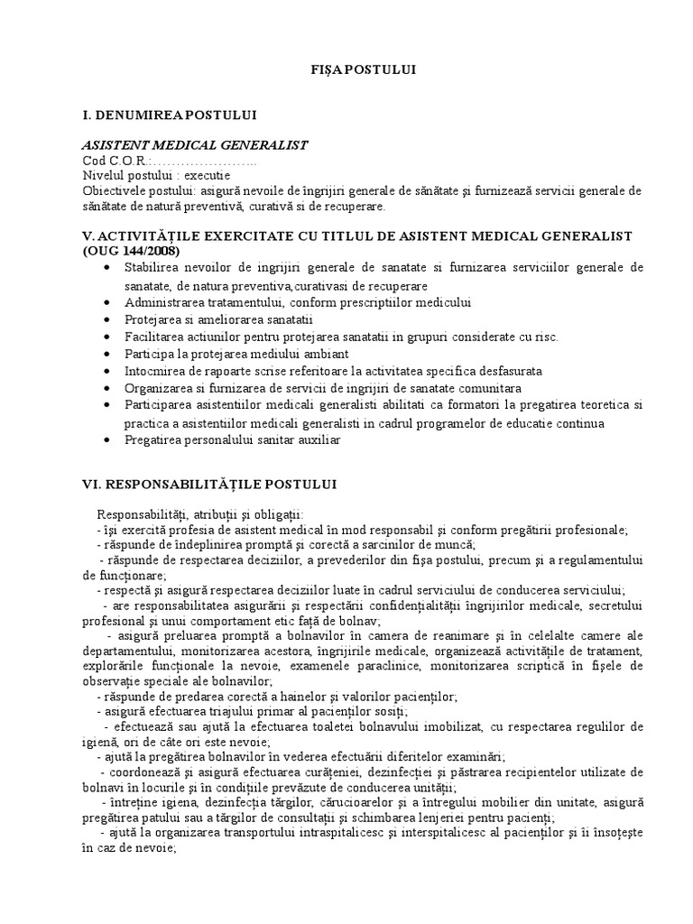 Model Fisa Postului Pentru Asistent Medical Generalist Medical Model Management