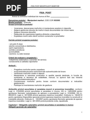 Fișa Postului și Fișă De Evaluare A Performanțelor Individuale Pentru Manipulant Mărfuri Cod Cor 933303
