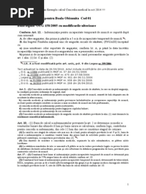 E bine de retinut de la bun inceput ca exista mai multe tipuri de concedii medicale iar durata si plata acestora difera pentru fiecare in parte. Codul fiscal face distinctie in ceea ce priveste contributiile sociale datorate pentru indemnizatiile de asigurari sociale de sanatate dupa cum indemnizatiile sunt suportate din fondurile angajatorului sau din fnuass. Am stat 8 zile în spital sigur am cerut concediu medical. Concediu medical cod 01.