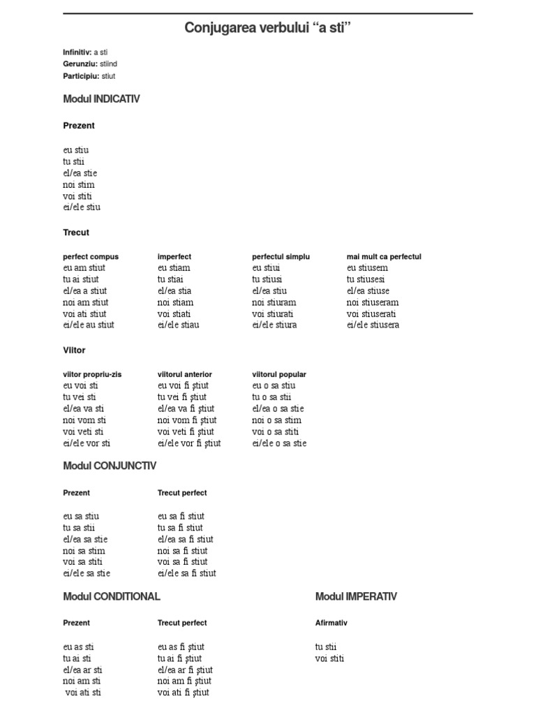 Conjugarea Verbului A Sti