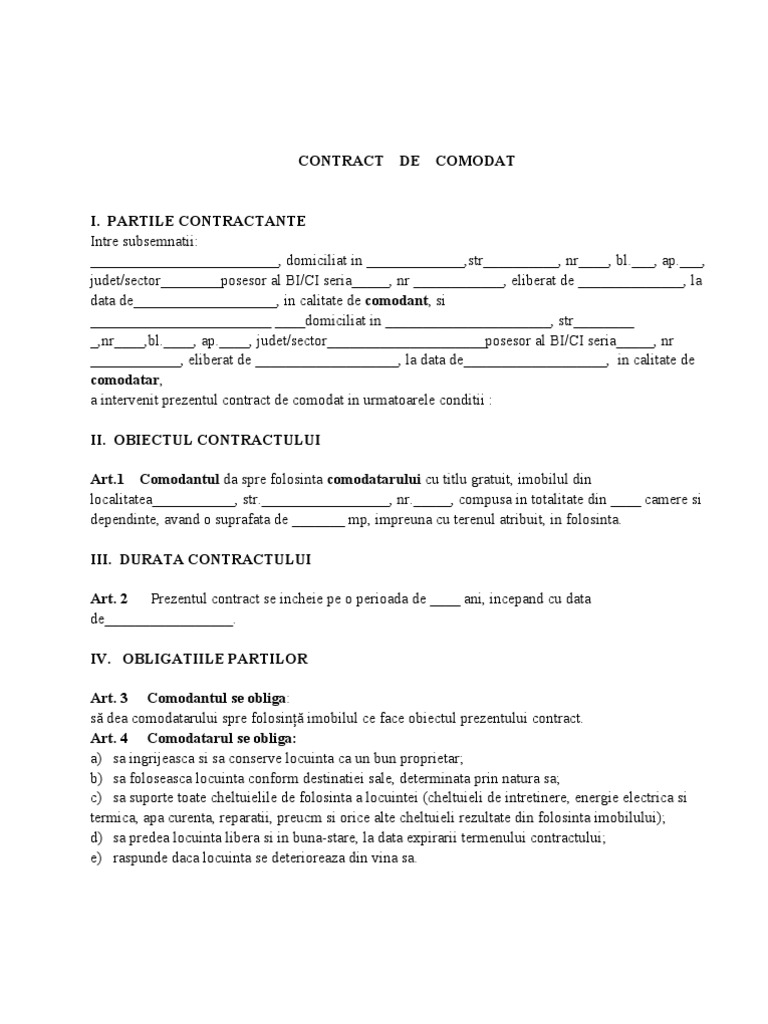 Contract De Comodat Model Acte Necesare Condiții Storia Ro