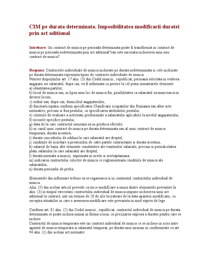 Contractul Individual De Munca Pe Durata Determinata Si Obligatiile Angajatorului 2019 Student Pe Net Portal Studentesc De Socializare