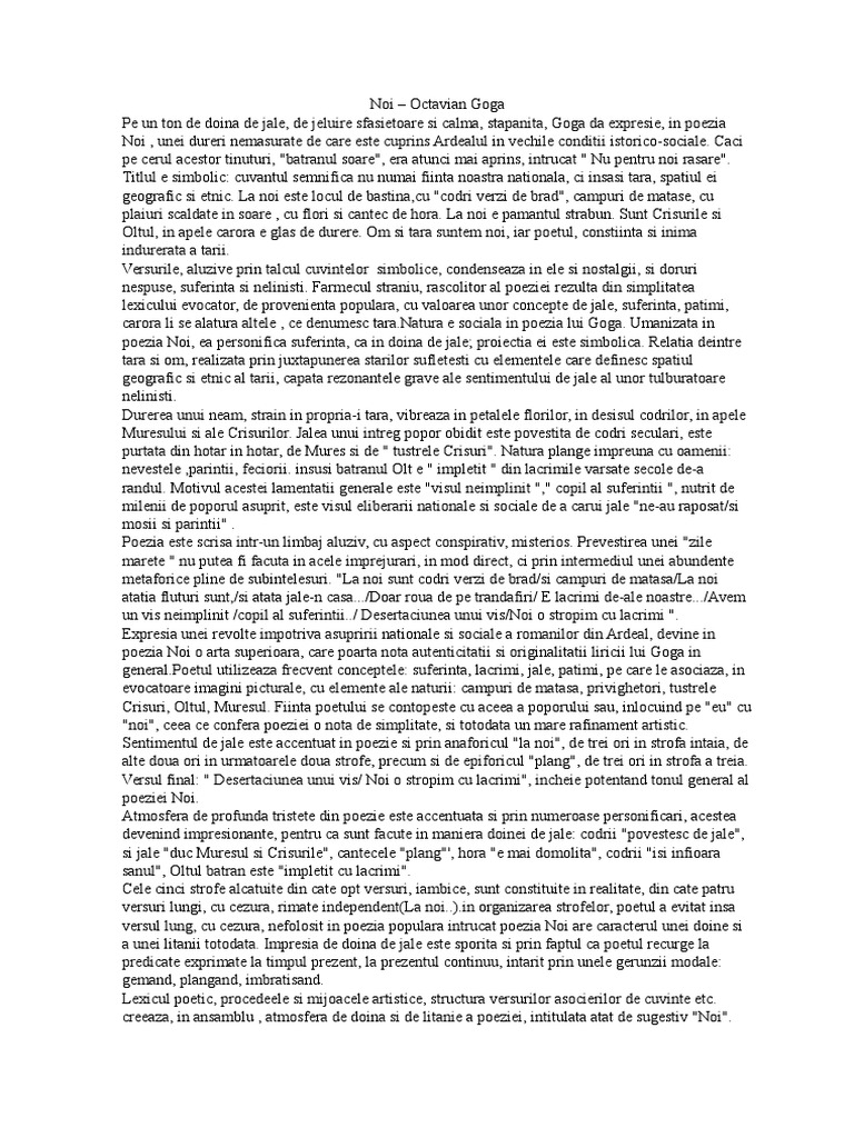 Octavian Goga Poezia Noi Limba Romana Studocu