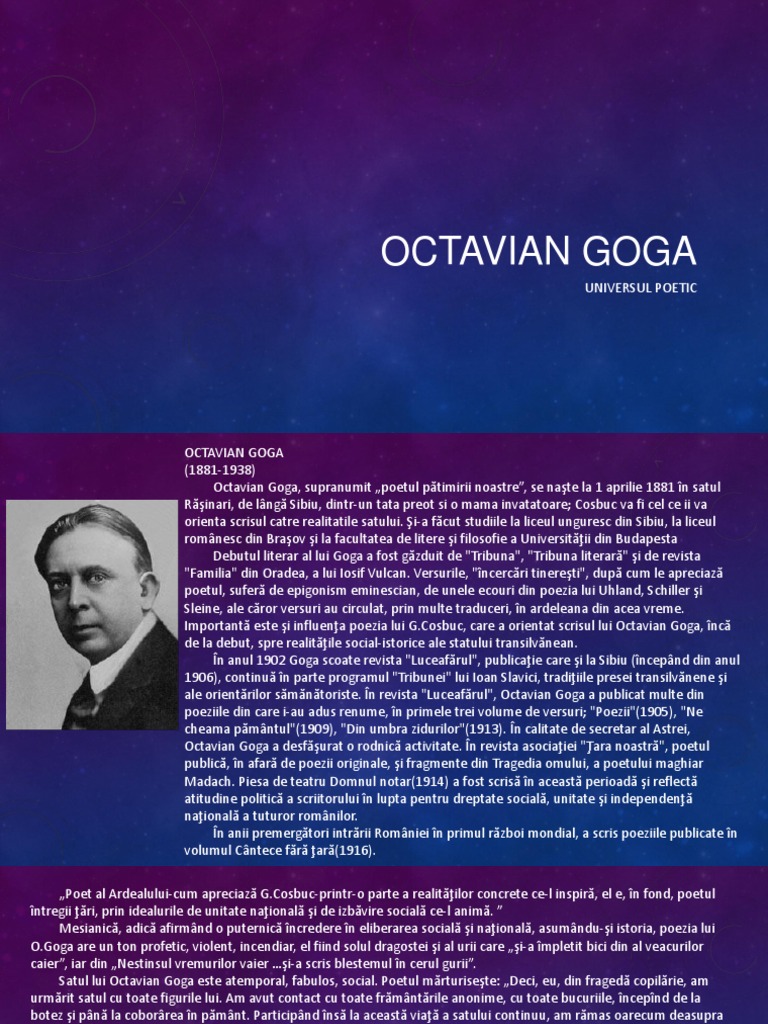 Octavian Goga Referate Opera Lui Octavian Goga Comentariu Romana