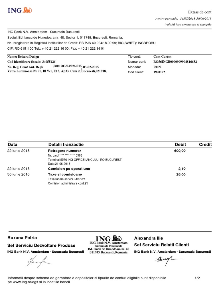 Ing Bank Extras De Cont Iunie