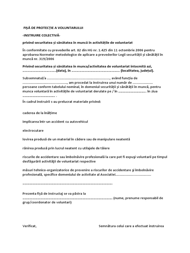 Fisa De Protectie A Voluntarilor Pentru Instruirea Colectiva Doc