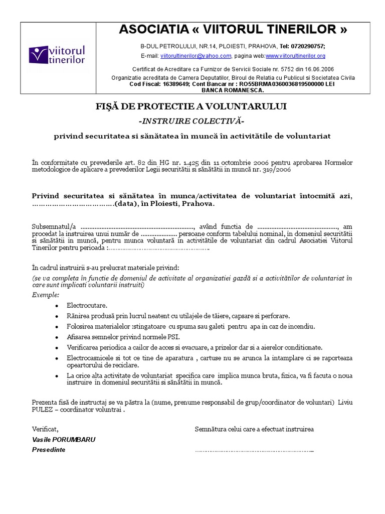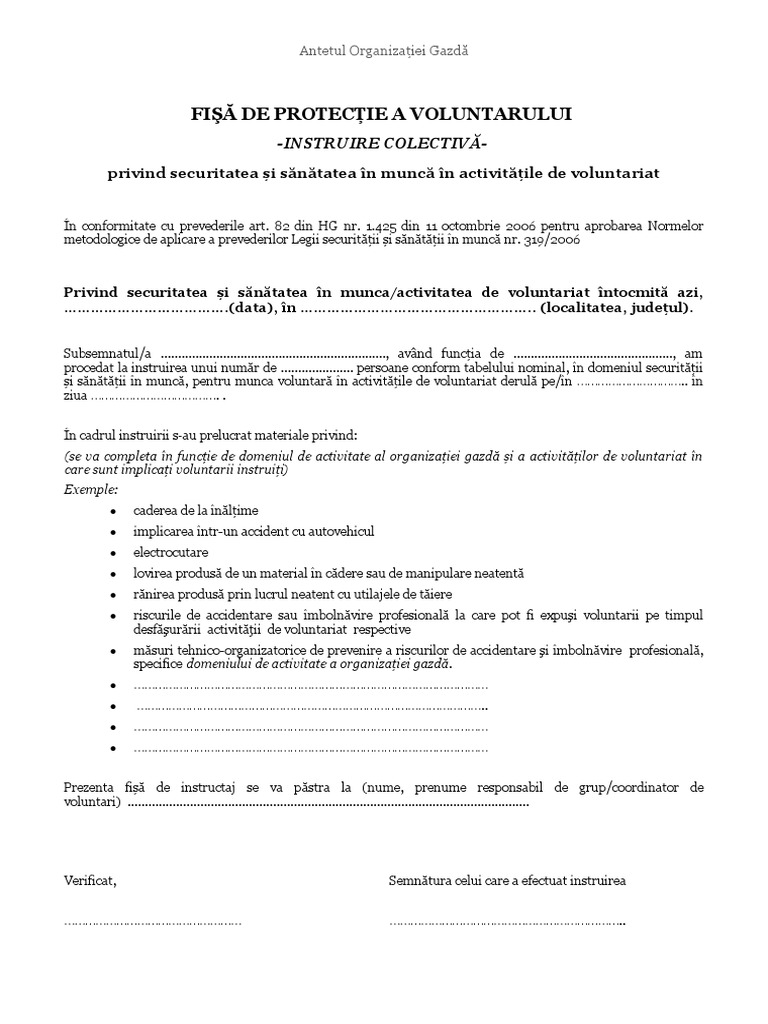 Model Fisă De Protectie A Voluntarului