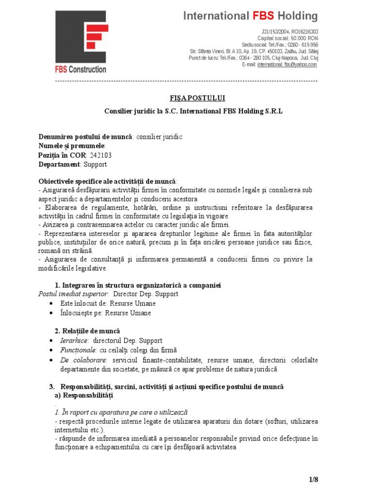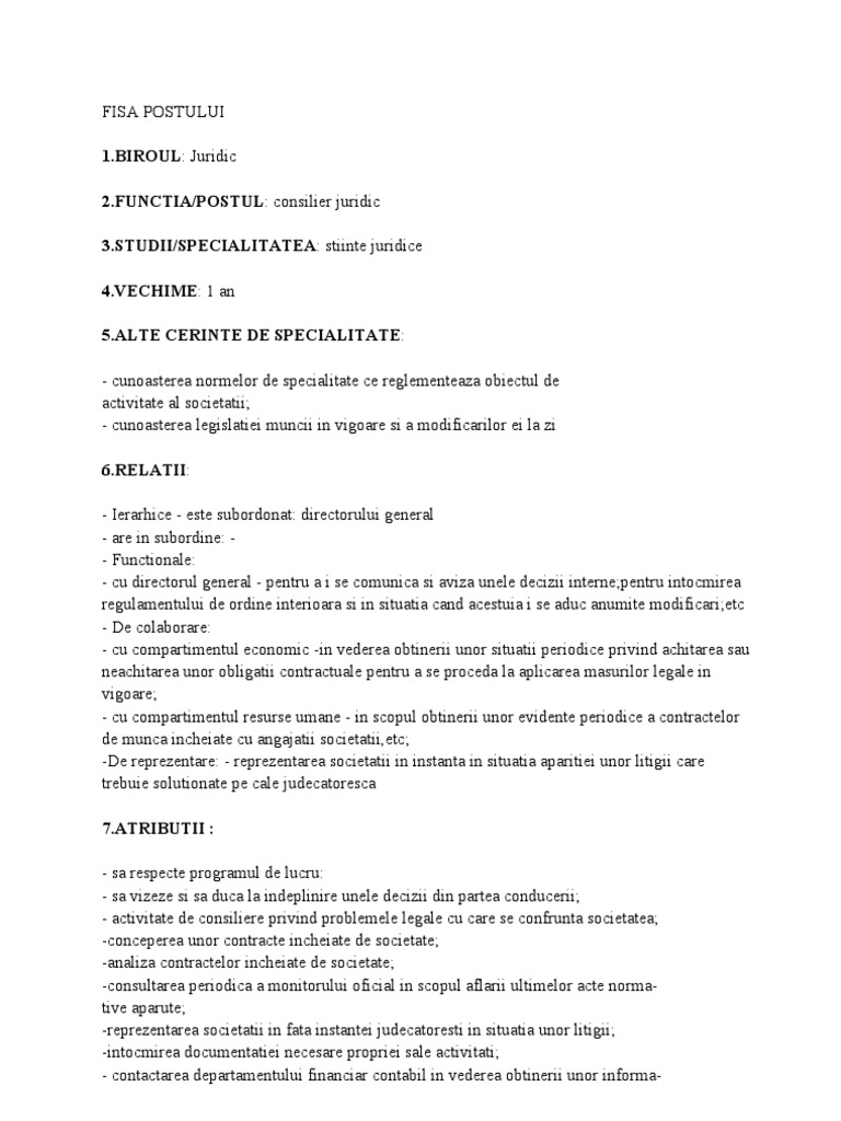 Fisa Postului Pentru Consilier Juridic Pdf Bani Si Afaceri La Cheie