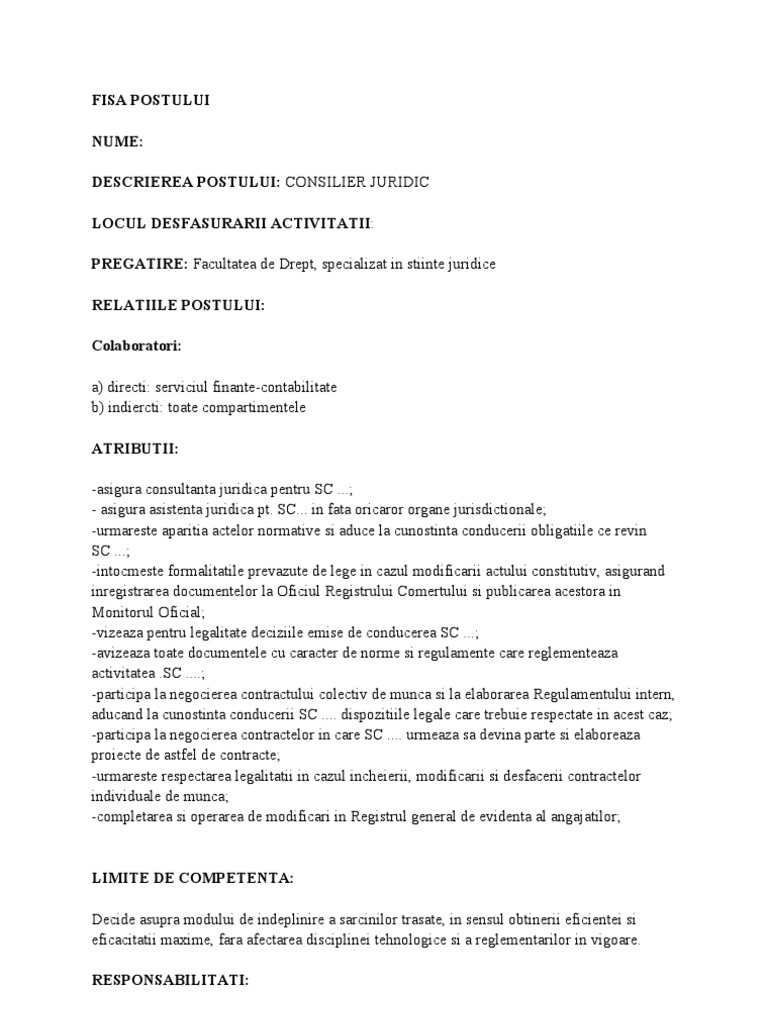 Fisa Postului Pentru Consilier Juridic Pdf Bani Si Afaceri La Cheie