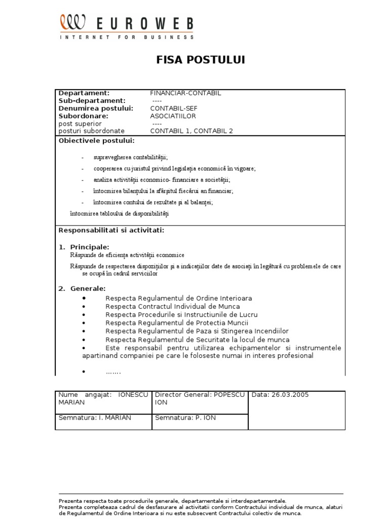 Model De Fisa De Post Pentru Contabil Sef 1 Doc