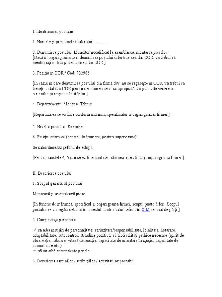 Fișa De Post Muncitor Necalificat Model Gratuit Editabil Theexperts Ro