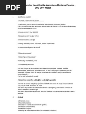 Fisa Post Necalificat Asamblarea Si Montarea Pieselor