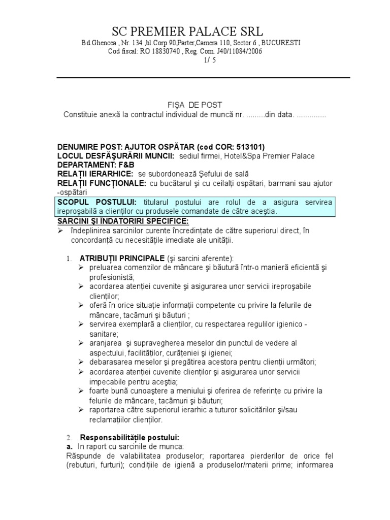 Fisa Postului Ospatar Doc
