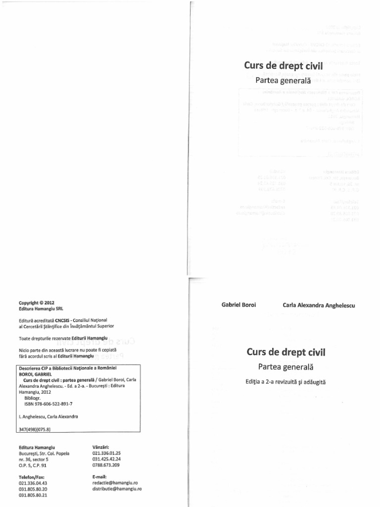 Gabriel Boroi Carla Alexandra Anghelescu Curs De Drept Civil Partea Generală Conform Noului Cod Civil Ediţia A 2 A Revizuită Si Adăugită Ed Hamangiu Bucuresti 2012