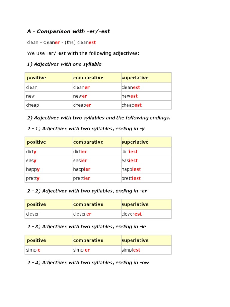 Grade De Comparatie Adjective Engleza