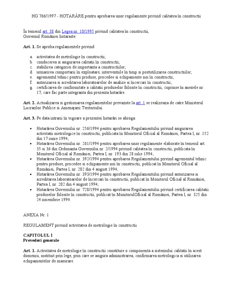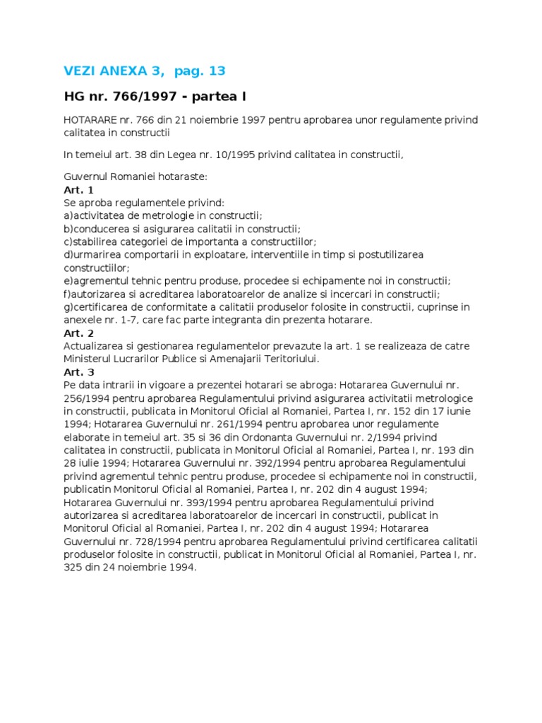 Documentatie Hg 766 1997 Pentru Aprobarea Unor Regulamente Privind Calitatea In Constructii 345301 Graduo