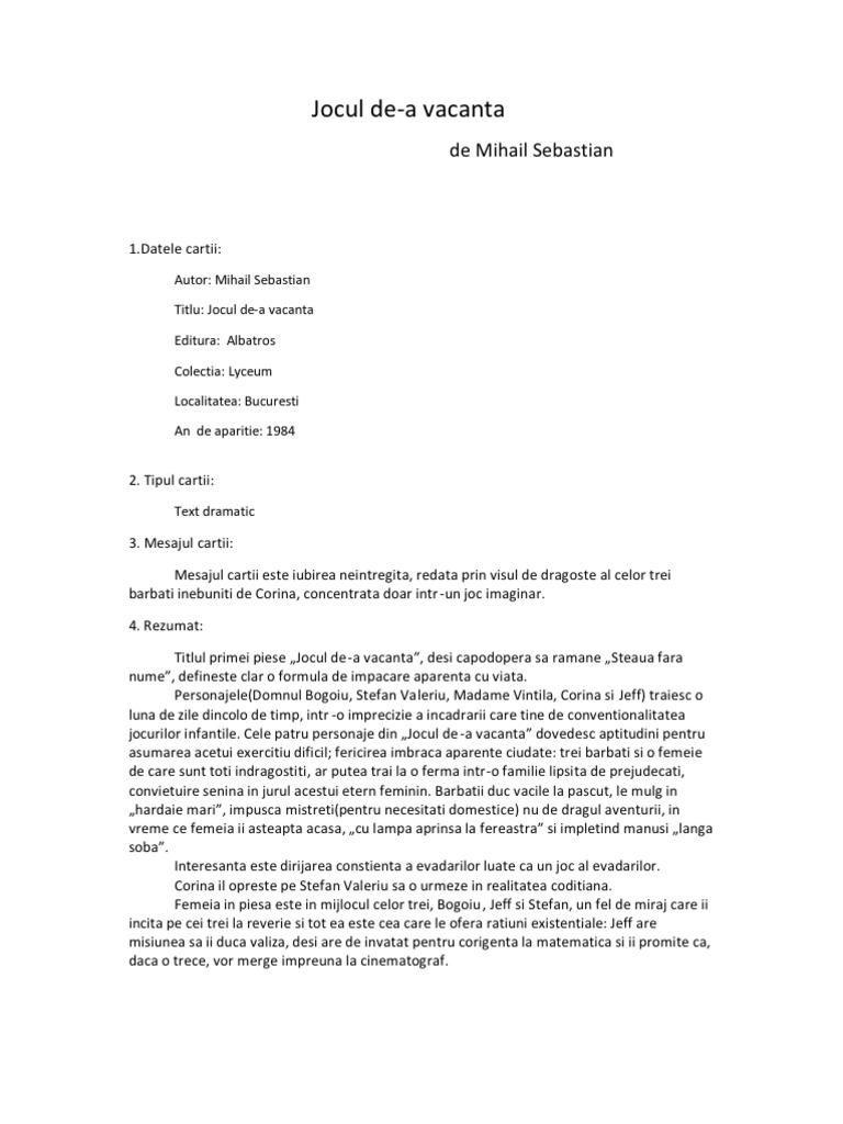 Jocul De A Vacanta Mihail Sebastian Pdf