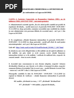 Ghid Privind Repartizarea Trimestriala A Dividendelor Srl An Infiintare 2018 Asociat Unic