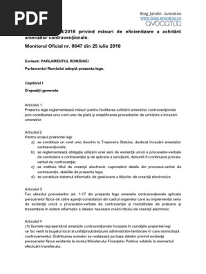 Legea 203 2018 Legea Privind Masuri De Eficientizare A Achitarii Amenzilor Contraventionale