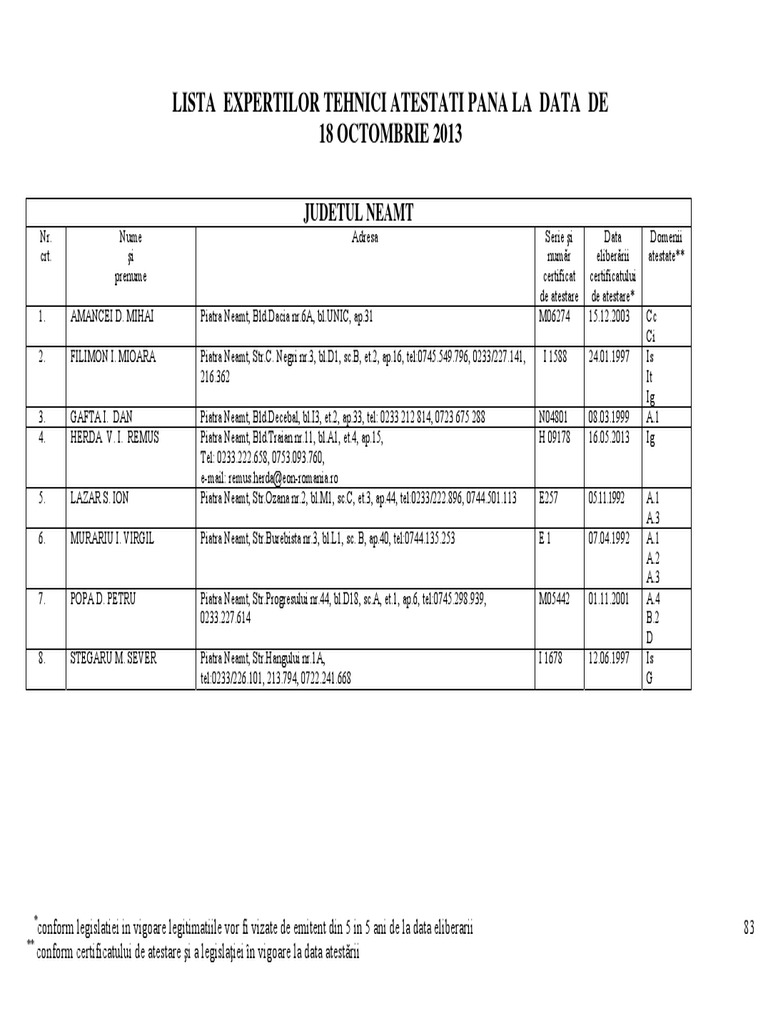Lista Experti Tehnici Neamt
