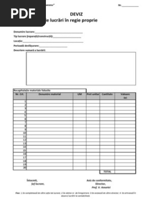Sablon Deviz Lucrare Regie Proprie
