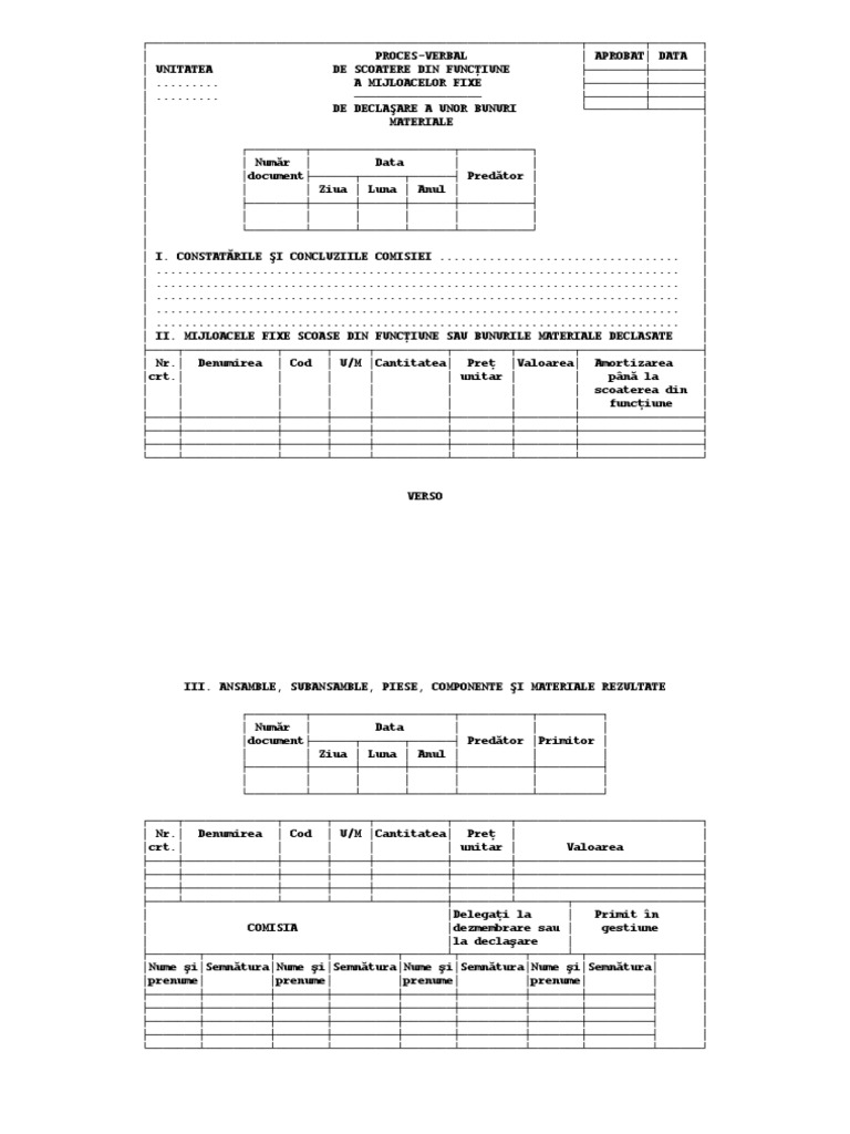 Proces Verbal De Scoatere Din Funcţiune A Mijloacelor Fixe De Declasare A Unor Bunuri Materiale Contabilitate Fiscalitate Monografii Contabile
