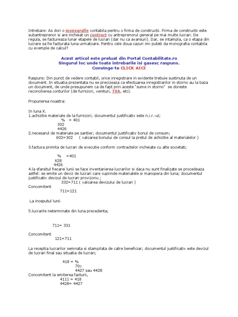 Monografie Contabila Constructii Pdf Document