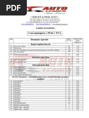 Normativ Manopera Service Auto