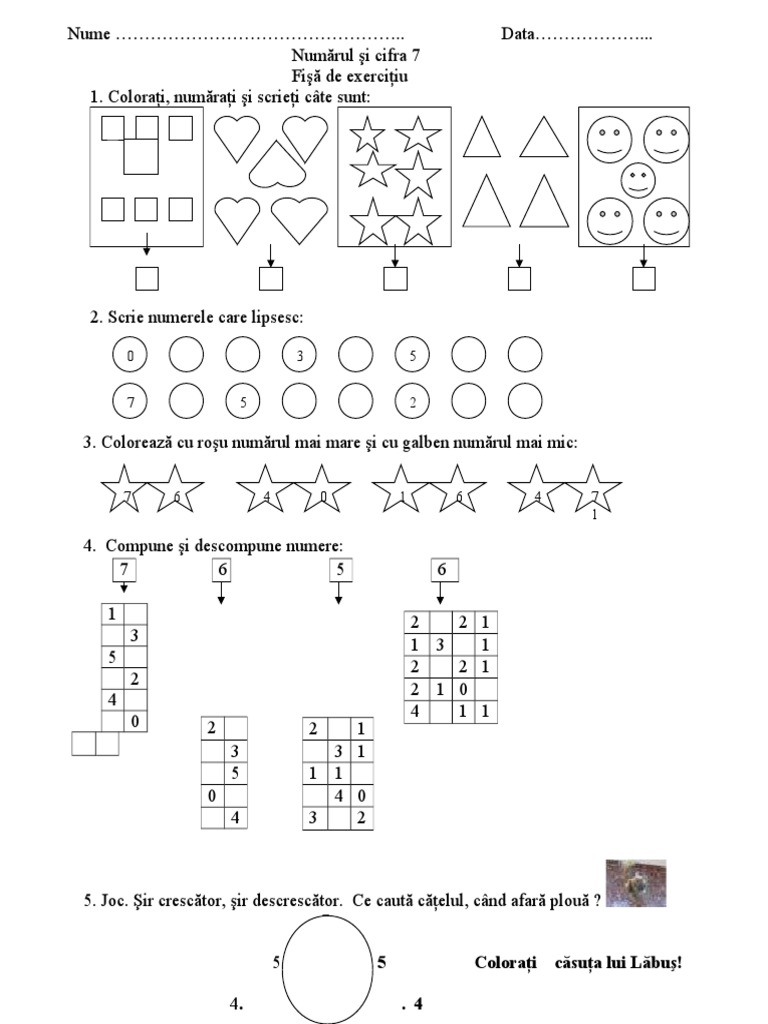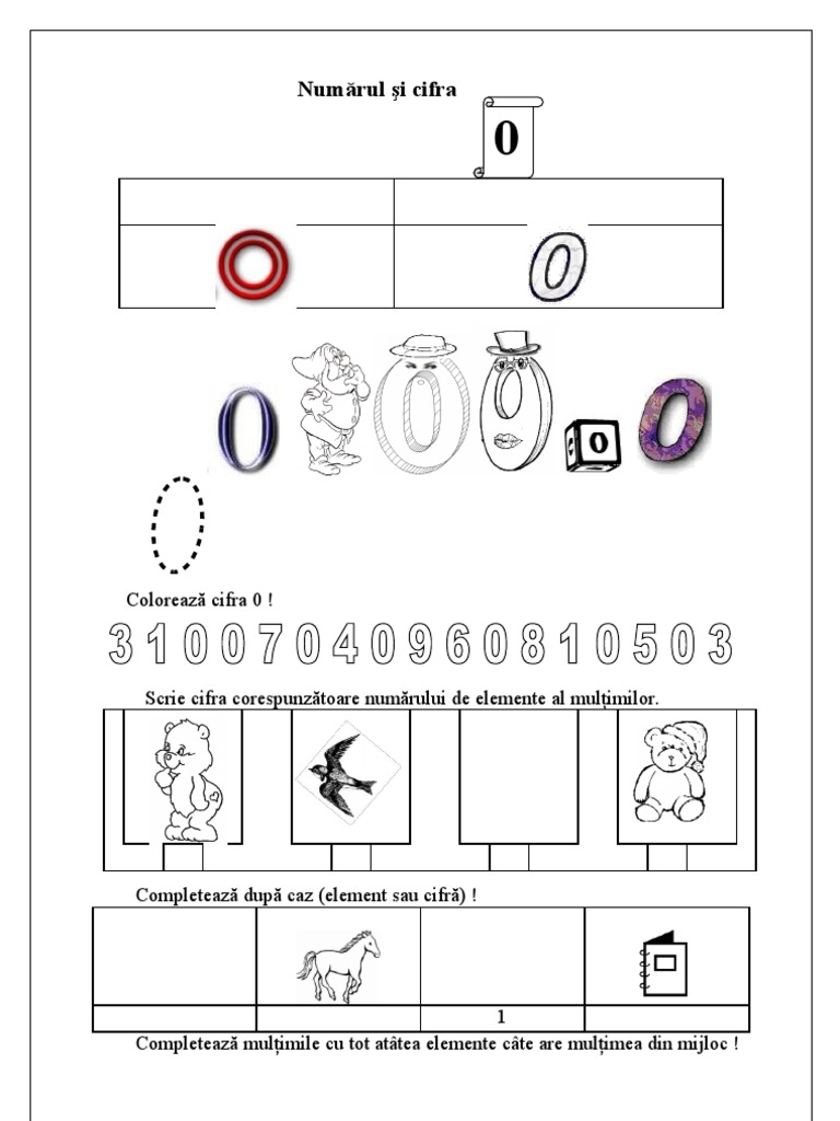 Clasa Pregătitoare Numărul și Cifra 0 Zero Fișe De Lucru Grădiniță Matematică