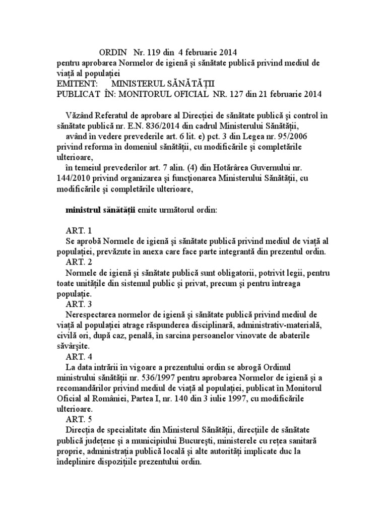 Pdf Ordin Nr 119 Din 4 Februarie 2014 Mediu De Viata A Populatiei Alex Ionescu Academia Edu
