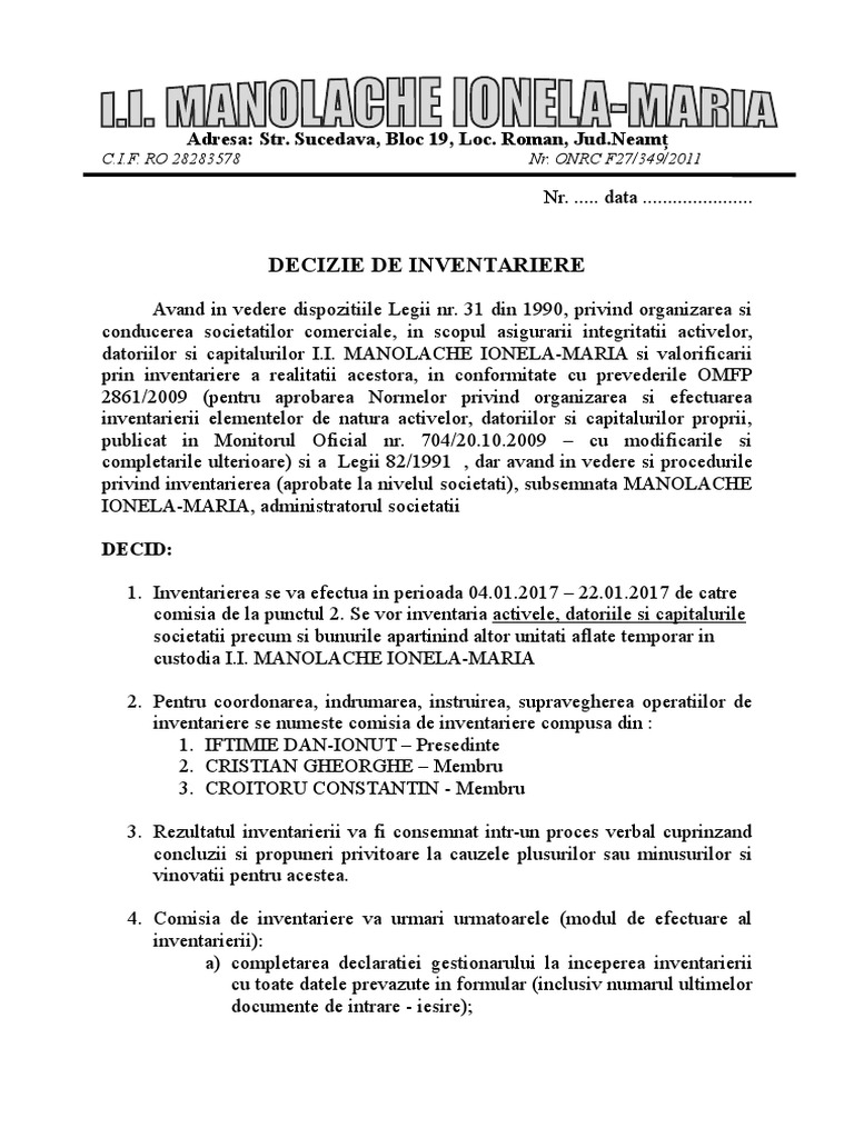 Doc Decizie Inventariere Raluca Maria Academia Edu