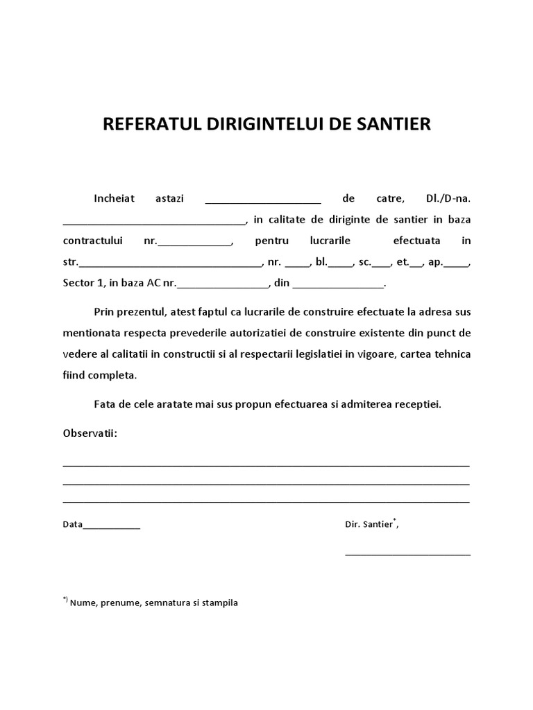 Referatul Dirigintelui De Santier Model Tkobra