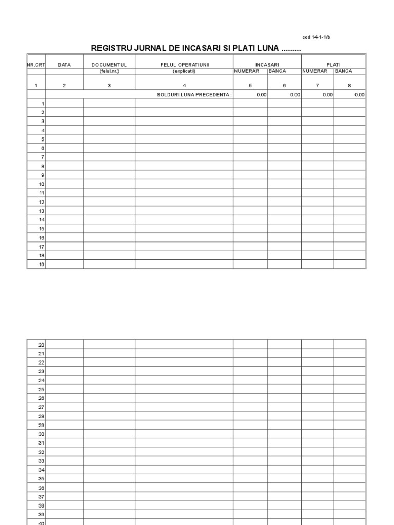 Registrul Jurnal De Incasări și Plăți Cod 14 1 1 B Contabilitate In Partidă Simplă Pfa Ii If