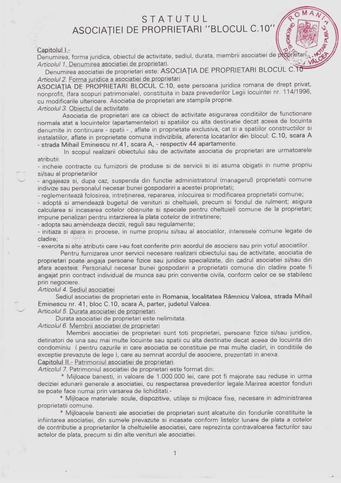 Asociatia De Proprietari Bloc C10 Statutul Asociatiei