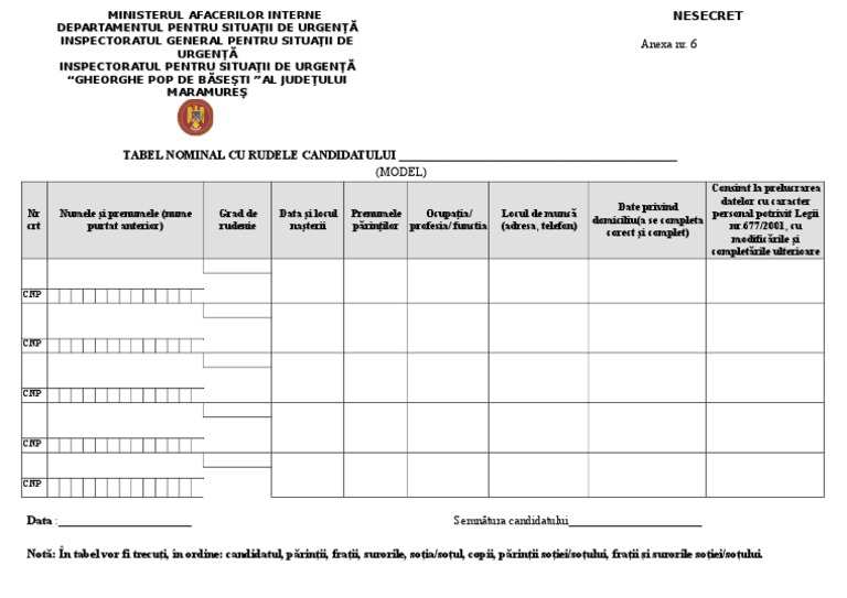 Anexa 6 Model Tabel Nominal Cu Rudele Candidatului 5