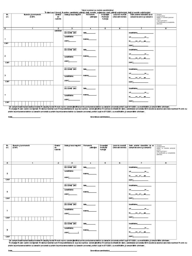 Tabel Nominal Cu Rudele Candidatului Politie Model 2020