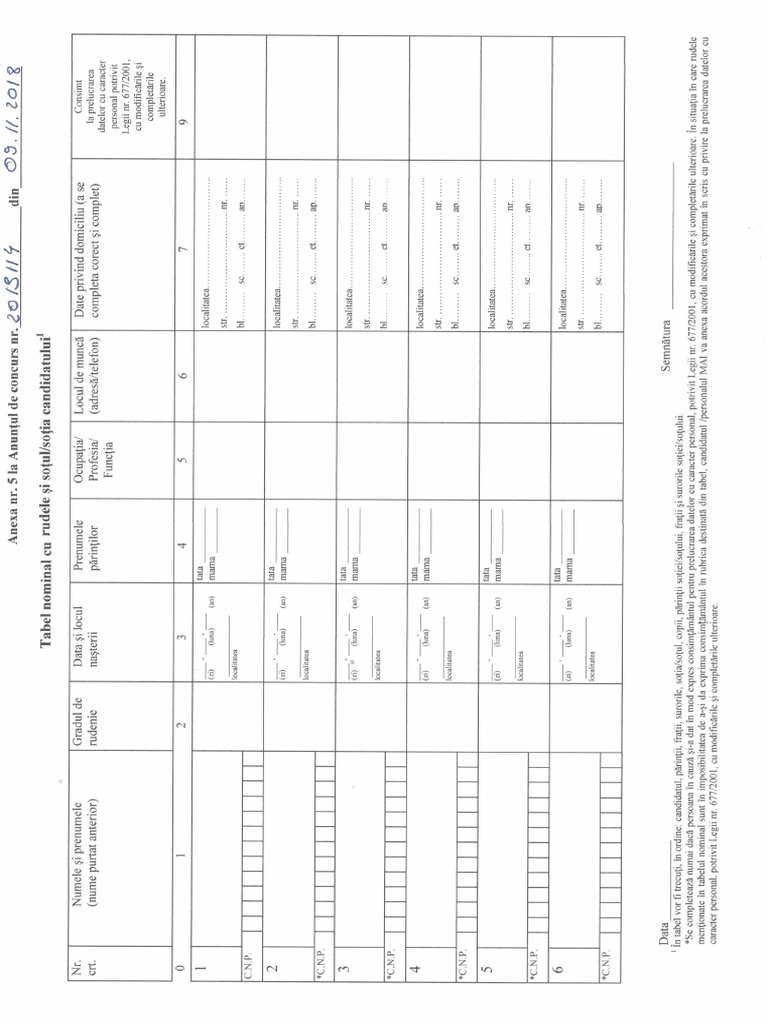Anexa Nr 5 Model Tabel Nominal Cu Rudele Candidatului