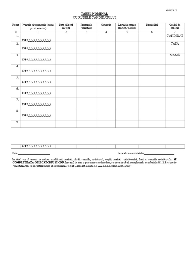Anexa Nr 5 Model Tabel Nominal Cu Rudele Candidatului