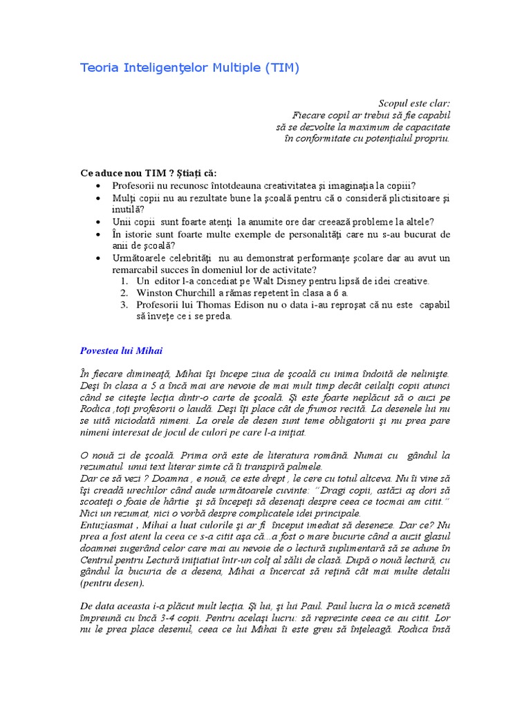 Teoria Inteligentelor Multiple Aplicatii By Ciuhandu Dorina