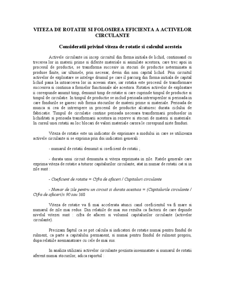 Viteza De Rotatie Si Folosirea Eficienta A Activelor Circulante