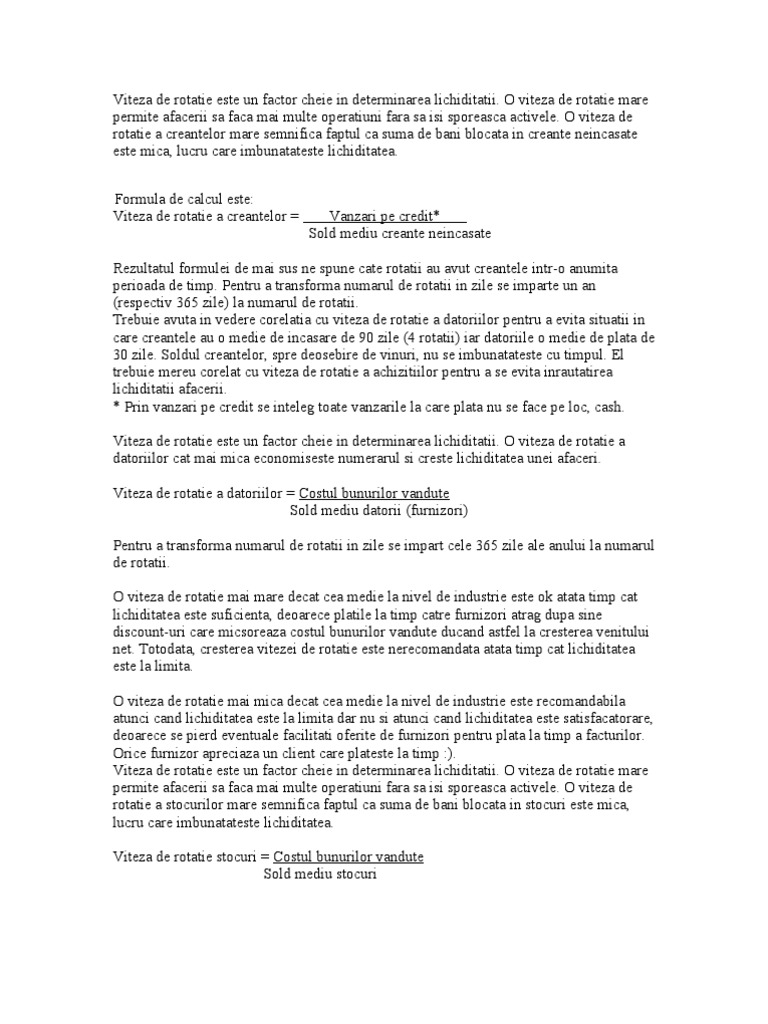 Viteza De Rotatie A Stocurilor Calcul